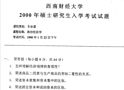 聚英考研网为大家整理了2000年西南财经大学《政治经济学》考研真题,部分内容如下: