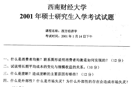 聚英考研网为大家收集整理了西南财经大学2001年硕士研究生入学考试试题,部分内容如下: