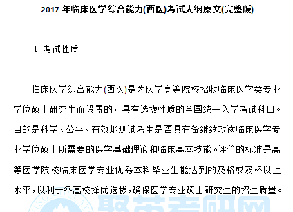 2017年考研西医综合考试大纲原文(完整版)