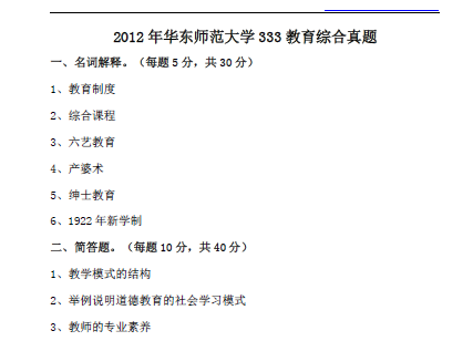 聚英考研网收集整理了2012年华东师范大学333教育综合考研真题,部分内容如下: