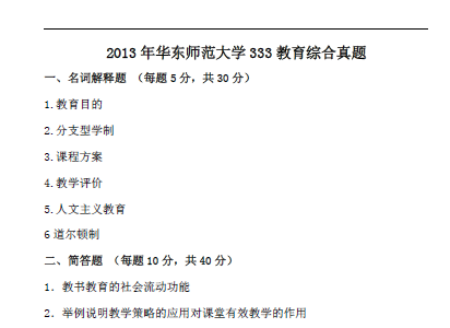 聚英考研网收集整理了2013年华东师范大学333教育综合考研真题,部分内容如下: