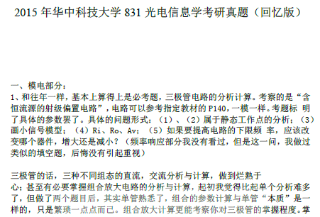 聚英考研网整理了2015年华中科技大学831光电信息学考研真题(回忆版),部分内容如下: