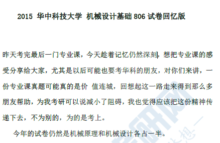聚英考研网整理了2015华中科技大学机械设计基础806试卷回忆版,部分内容如下: