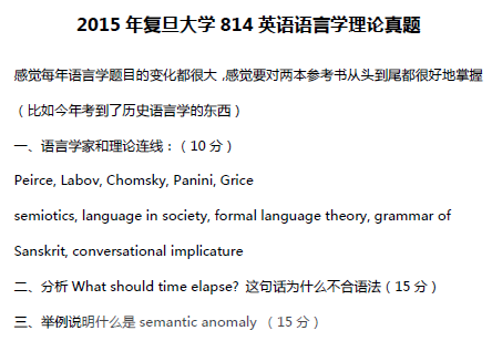 2015年复旦大学814英语语言学理论真题(回忆版)