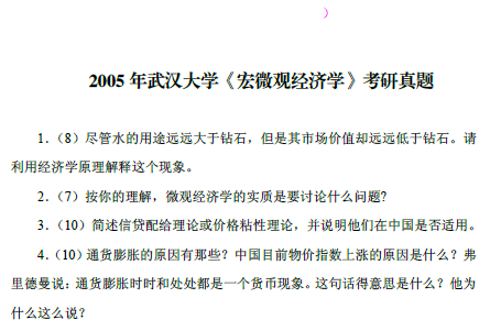 2005年武汉大学《宏微观经济学》考研真题