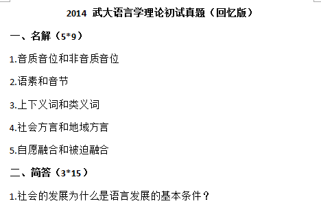 聚英考研网整理了2014年武大语言学理论初试真题(回忆版),部分内容如下: