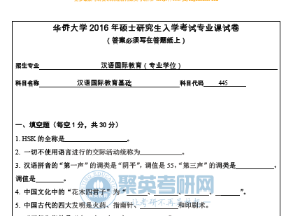 聚英考研网整理了2016年华侨大学445汉语国际教育基础考研真题,部分内容如下: