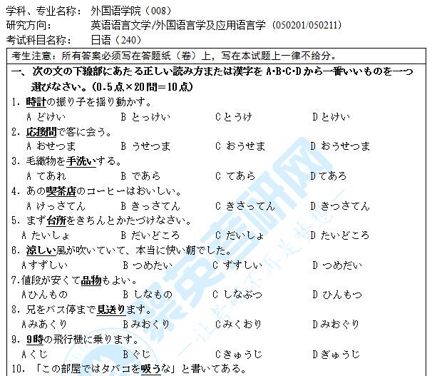 聚英考研网整理了2016年暨南大学240日语考研真题,部分内容如下: