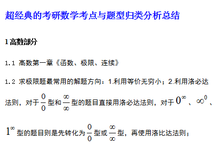 为方面各位考生更有方向地复习,聚英考研信息网特整理了超经典的考研数学考点与题型归类分析总结,希望助各位考生一臂之力。部分内容展示如下,完整版请下载附件:
