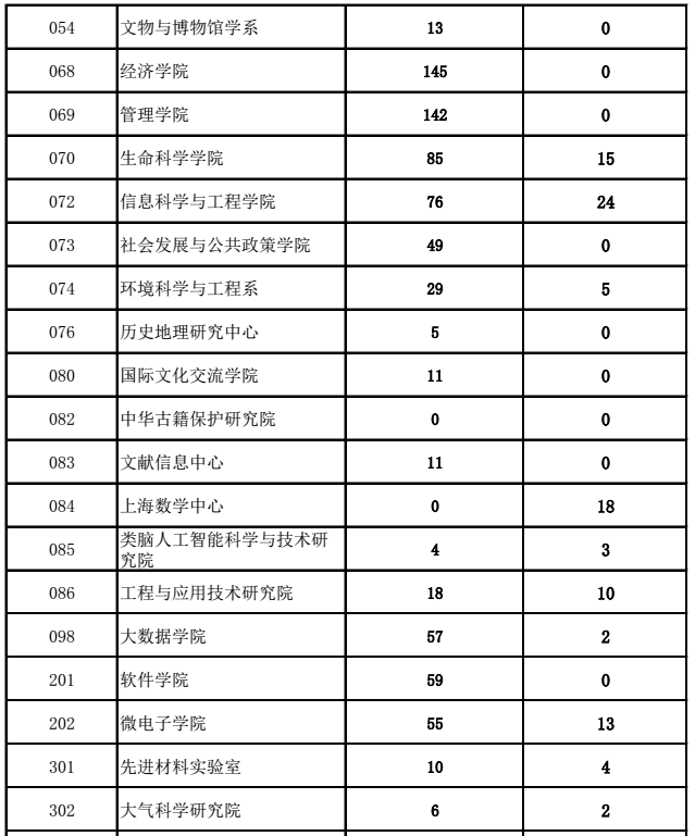 复旦大学2018年推免生拟录取人数统计表(除上海医学院外)