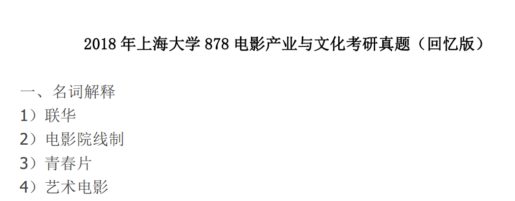 2018年上海大学878电影产业与文化考研真题(回忆版)