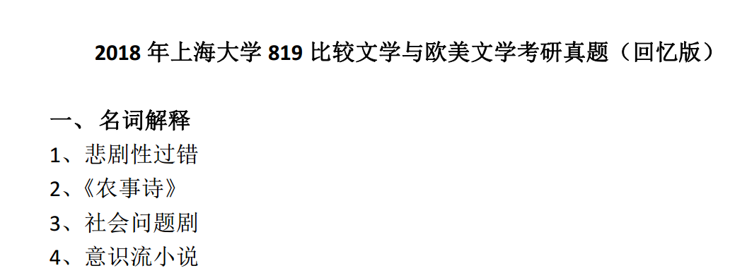 附件内容包含:2018年上海大学819比较文学与欧美文学考研真题(回忆版).pdf