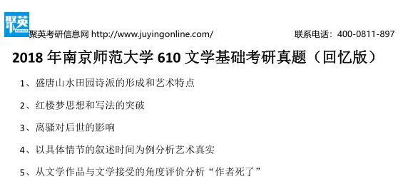 聚英南京师范大学考研网整理了2018年南京师范大学610文学基础考研真题(回忆版),部分内容如下:
