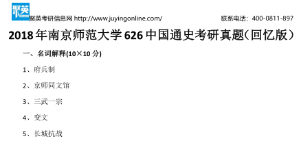 聚英南京师范大学考研网整理了2018年南京师范大学626中国通史考研真题(回忆版),部分内容如下: