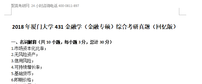 聚英考研网整理提供2018年厦门大学431金融学(金融专硕)综合考研真题(回忆版),部分内容如下: