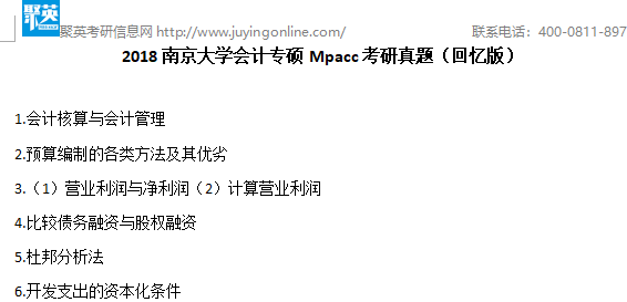 聚英南京大学考研网小编整理了2018南京大学会计专硕Mpacc考研真题(回忆版),部分内容如下: