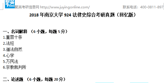 聚英南京大学考研网小编整理了2018年南京大学924法律史综合考研真题(回忆版),部分内容如下: