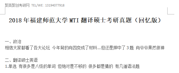 完整版内容请下载附件:2018年福建师范大学MTI翻译硕士考研真题(回忆版)
