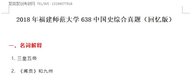 聚英聚创福建师范大学考研网 整理提供2018年福建师范大学638中国史综合真题(回忆版),部分内容如下: