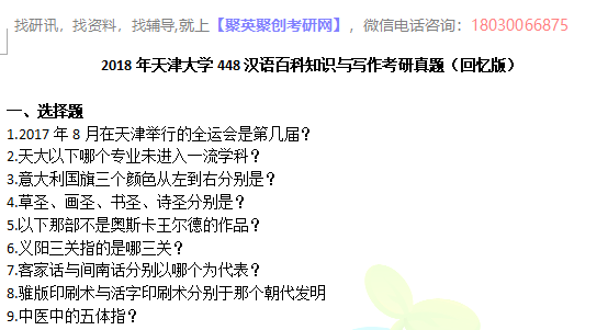 聚英天津大学考研网小编整理了2018年天津大学448汉语百科知识与写作考研真题(回忆版),部分内容如下: