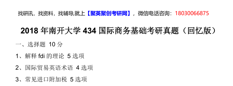 2018年南开大学434国际商务基础考研真题(回忆版)