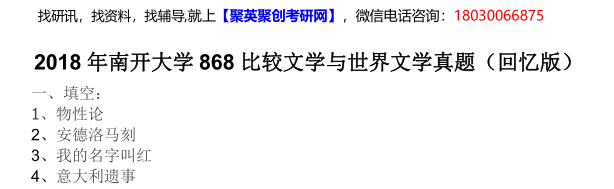 聚英南开大学考研网小编整理了2018年南开大学868比较文学与世界文学真题(回忆版),部分内容如下: