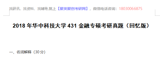 聚英聚创华中科技大学考研网 整理提供2018年华中科技大学431金融专硕考研真题(回忆版) ,部分内容如下: