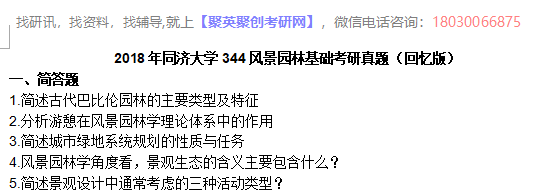 聚英同济大学考研网整理了2018年同济大学344风景园林基础考研真题(回忆版),部分内容如下: