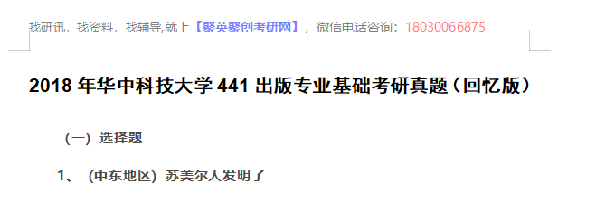完整版请下载附件:2018年华中科技大学441出版专业基础考研真题(回忆版)