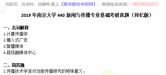 聚英南京大学考研网小编整理了2019年南京大学440新闻与传播专业基础考研真题(回忆版),部分内容如下: