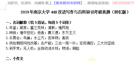 2019年南京大学448汉语写作与百科知识考研真题(回忆版)