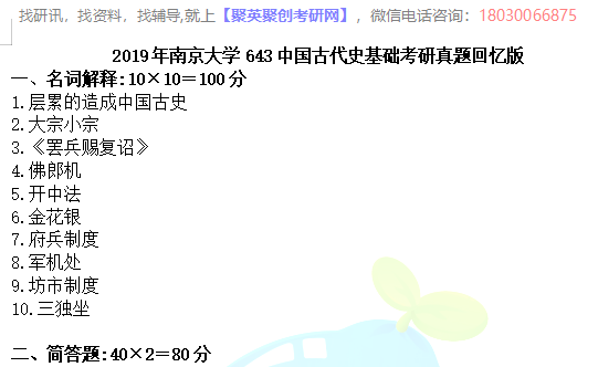 考研院校库 > 资料下载 > 2019年南京大学643中国古代史基础考研真题回忆版
