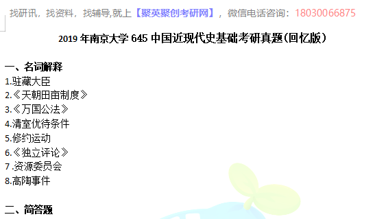 聚英南京大学考研网小编整理了2019年南京大学645中国近现代史基础考研真题(回忆版),部分内容如下:
