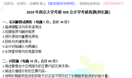 聚英南京大学考研网小编整理了2019年南京大学考研920会计学考研真题(回忆版),部分内容如下: