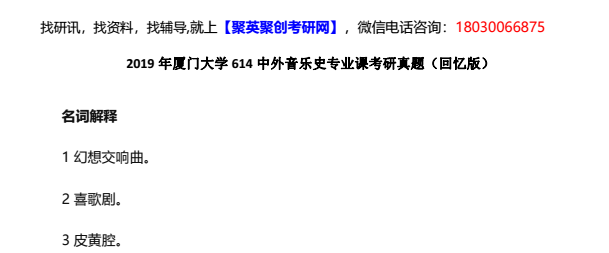 聚英厦门大学考研网整理提供2019年厦门大学614中外音乐史专业课考研真题(回忆版),部分内容如下: