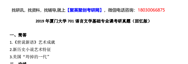 附件内容包含:2019年厦门大学701语言文学基础专业课考研真题(回忆版).pdf
