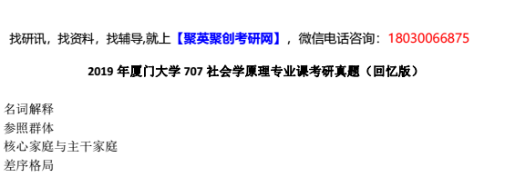 附件内容包含:2019年厦门大学707社会学原理专业课考研真题(回忆版).pdf