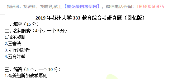 聚英苏州大学考研网整理了2019年苏州大学333教育综合考研真题(回忆版),部分内容如下: