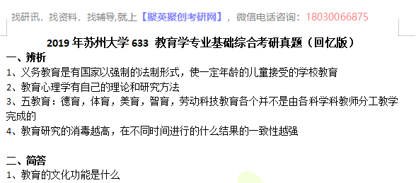 聚英苏州大学考研网整理了2019年苏州大学633 教育学专业基础综合考研真题(回忆版),部分内容如下: