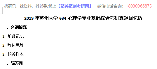 聚英苏州大学考研网整理了2019年苏州大学634心理学专业基础综合考研真题回忆版,部分内容如下:
