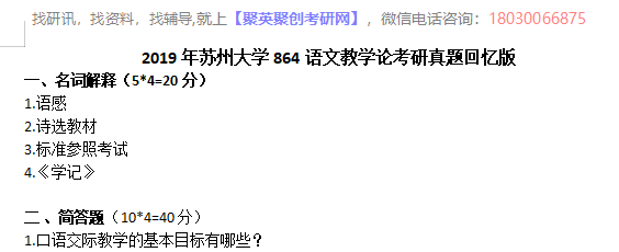 聚英苏州大学考研网整理了2019年苏州大学864语文教学论考研真题回忆版,部分内容如下: