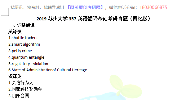 考研院校库 > 资料下载 > 2019苏州大学357英语翻译基础考研真题(回忆版)