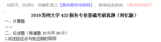 聚英苏州大学考研网整理了2019苏州大学433税务专业基础考研真题(回忆版),部分内容如下: