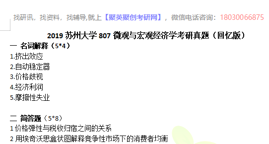 考研院校库 > 资料下载 > 2019苏州大学807微观与宏观经济学考研真题(回忆版)