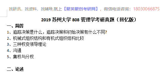 聚英苏州大学考研网整理了2019苏州大学808管理学考研真题(回忆版),部分内容如下: