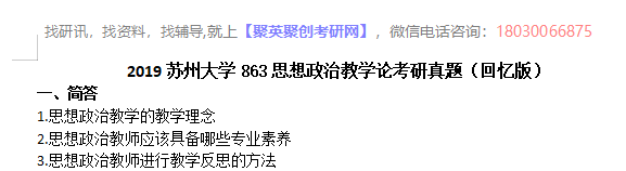 考研院校库 > 资料下载 > 2019苏州大学863思想政治教学论考研真题(回忆版)