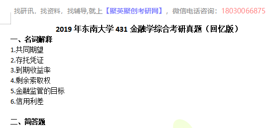 聚英东南大学考研网整理了2019年东南大学431金融学综合考研真题(回忆版),部分内容如下: