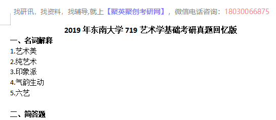 聚英东南大学考研网整理了2019年东南大学719艺术学基础考研真题回忆版,部分内容如下: