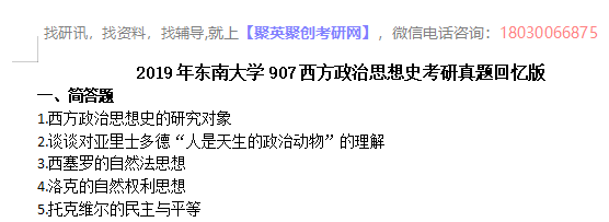聚英东南大学考研网整理了2019年东南大学907西方政治思想史考研真题回忆版,部分内容如下: