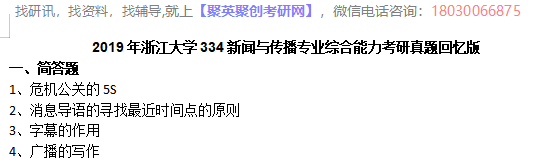 2019年浙江大学334新闻与传播专业综合能力考研真题(回忆版)